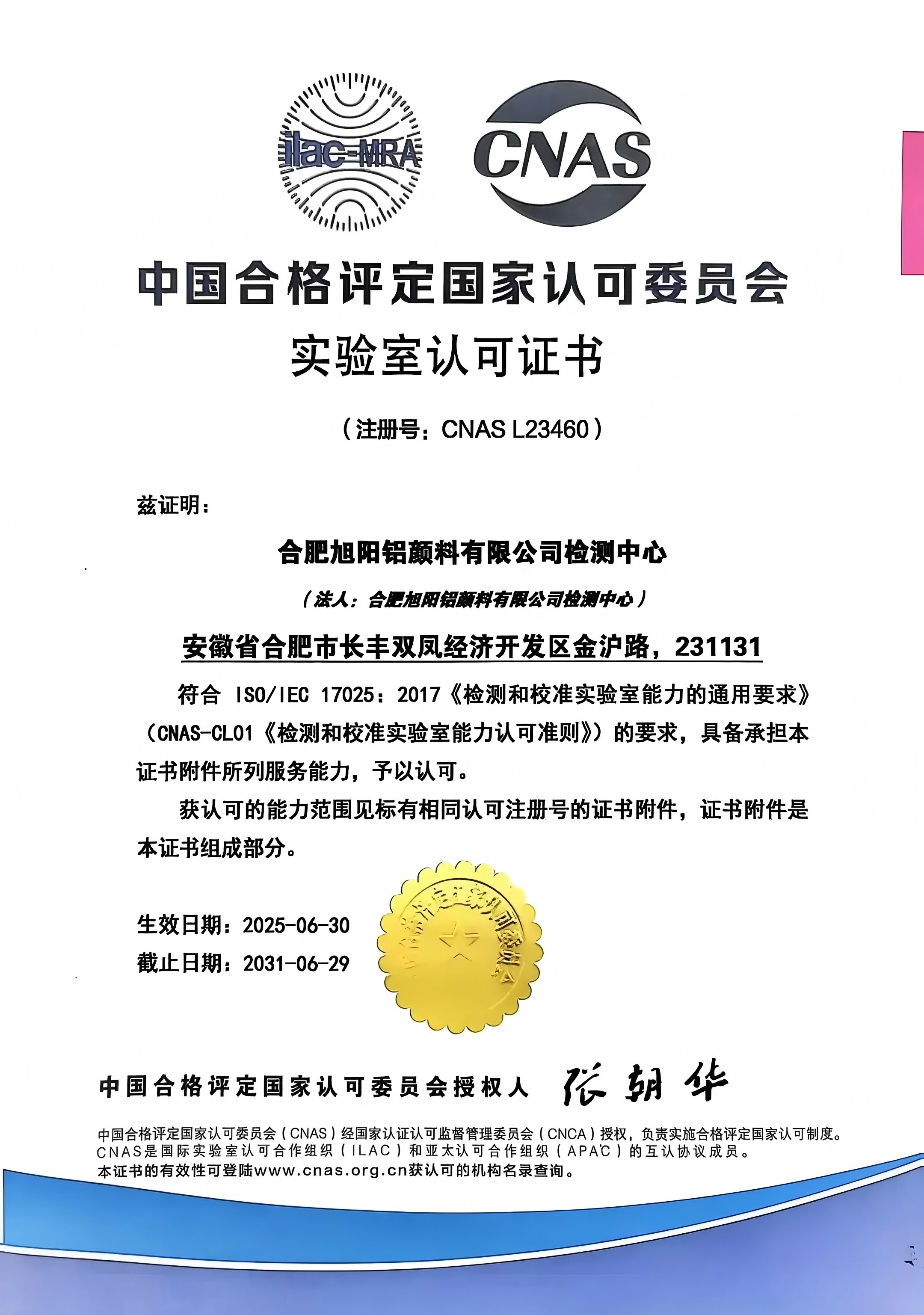 近日,旭陽檢測中心成功通過中國合格評定國家認可委員會(CNAS)的嚴格評審,正式獲得實驗室認可證書(注冊號:CNASL23460)!