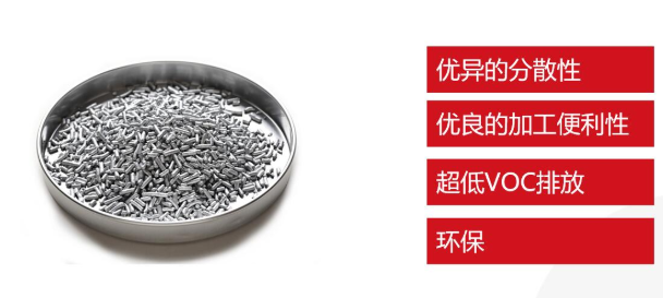 在塑膠染色過程中具有優(yōu)良的分散性、相容性、以及良好加工便利性,另外產(chǎn)品較傳統(tǒng)鋁顏料相比有效成分高,溶劑含量大大降低,使用環(huán)保等諸多優(yōu)良特性。